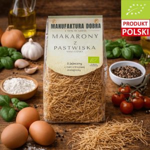 ✅ Z lokalnego gospodarstwa – wybierając ten makaron, wspierasz polskie rolnictwo ekologiczne i odpowiedzialną produkcję żywności.